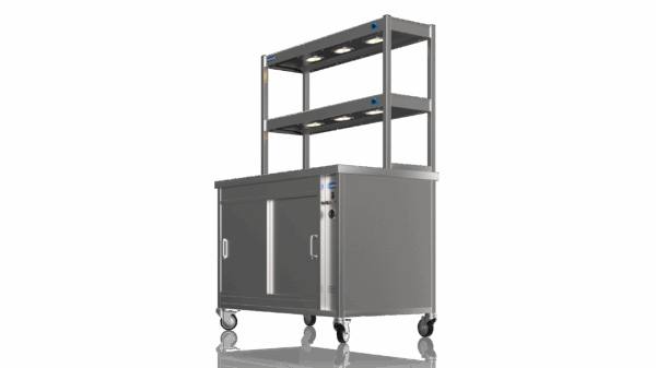 Hot Cupboard is a high quality, reliable appliance, ideal for care homes, restaurants and canteens. Constructed with easy to clean stainless steel, contents are kept at warm and hygienic temperatures due to its fully insulated panels, easily accessible using our own sliding door system. Perfect for confined spaces such as hallways and corridors. This Combination of Hot Cupboard and Gantry is commonly used as a Chefs Pass/ Chefs Hot Pass