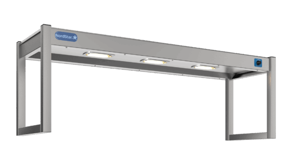 Single Tier Pass Over Gantry 1200mm is a robust over-shelving with 3 x Quartz lamp heating, Cleverly designed offering a strong fully welded stainless steel construction,  dimmer switch for individual control,  Standard lengths are made to suit the NordStar Premier range of hot cupboard and are sold as a combination Hot Cupboard and Gantry