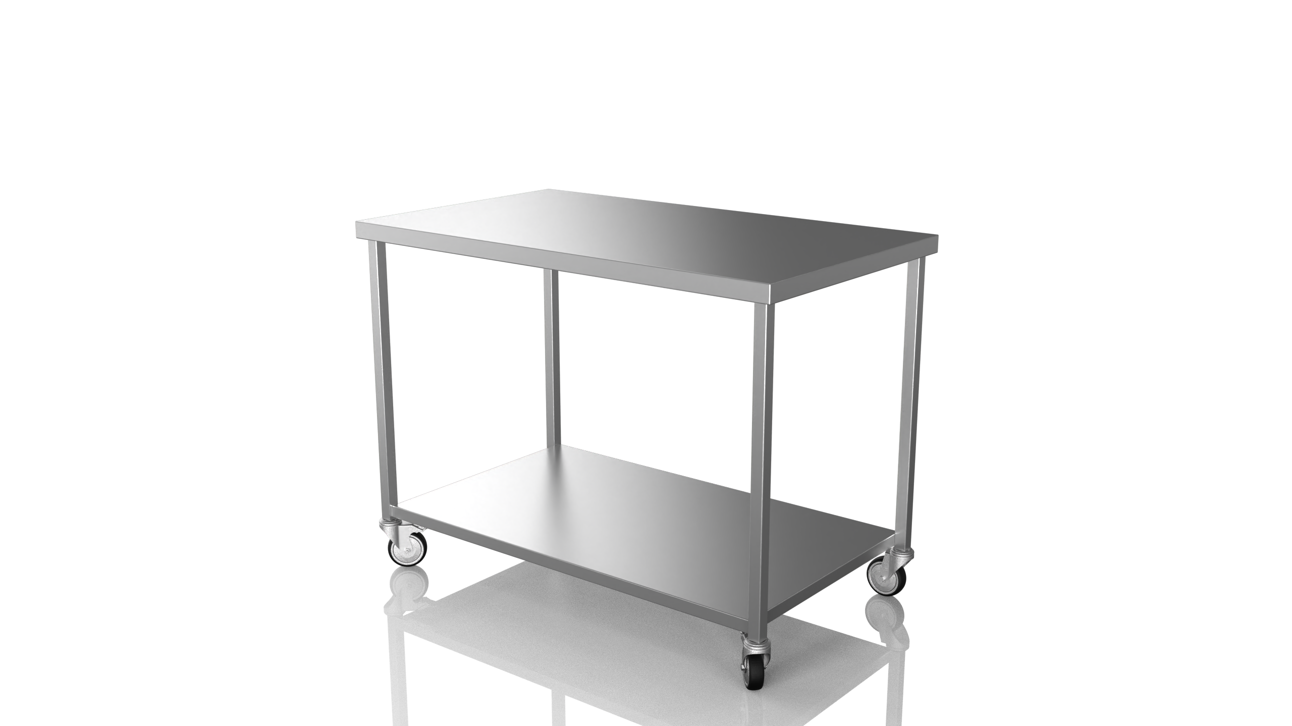 The Nordstar Mobile Centre Bench / Table is part of our growing NordStar Range  This simple yet effective mobile catering bench allows for easy cleaning as it can be pulled out of the way when mopping floors etc. Its strong (fully welded) stainless steel construction makes it tough enough for the busiest of kitchens and all the sizes of bench offer ample serving and preperation space. Unlike cheaper flat packed tables the Nordstar stainless tables are made here in the UK by skilled craftsman, cut, formed, welded and finished in house by us. with a sturdy 1.2mm 304 grade workstop, heavy duty (fully welded) box section frame and welded in shelving this unit will stand the test of time. Heavy duty castors also ensure a solid and stable unit, braked front castors mean that one the unit is in place it can be locked in position until movement is needed.