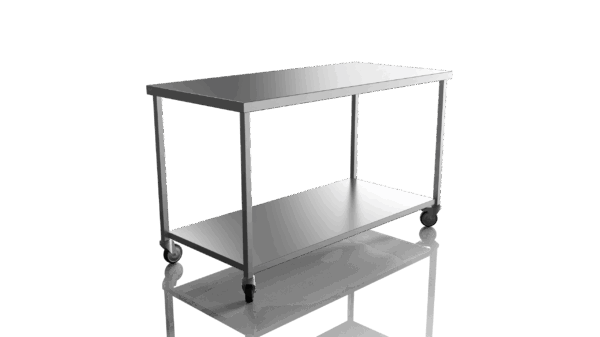 The Nordstar Mobile Centre Bench / Table is part of our growing NordStar Range  This simple yet effective mobile catering bench allows for easy cleaning as it can be pulled out of the way when mopping floors etc. Its strong (fully welded) stainless steel construction makes it tough enough for the busiest of kitchens and all the sizes of bench offer ample serving and preperation space. Unlike cheaper flat packed tables the Nordstar stainless tables are made here in the UK by skilled craftsman, cut, formed, welded and finished in house by us. with a sturdy 1.2mm 304 grade workstop, heavy duty (fully welded) box section frame and welded in shelving this unit will stand the test of time. Heavy duty castors also ensure a solid and stable unit, braked front castors mean that one the unit is in place it can be locked in position until movement is needed.