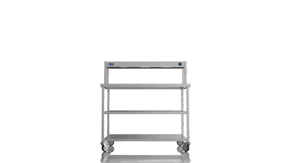 Mobile Centre Bench 1200 With 1 tier Heated Gantry (with Mid Shelf)