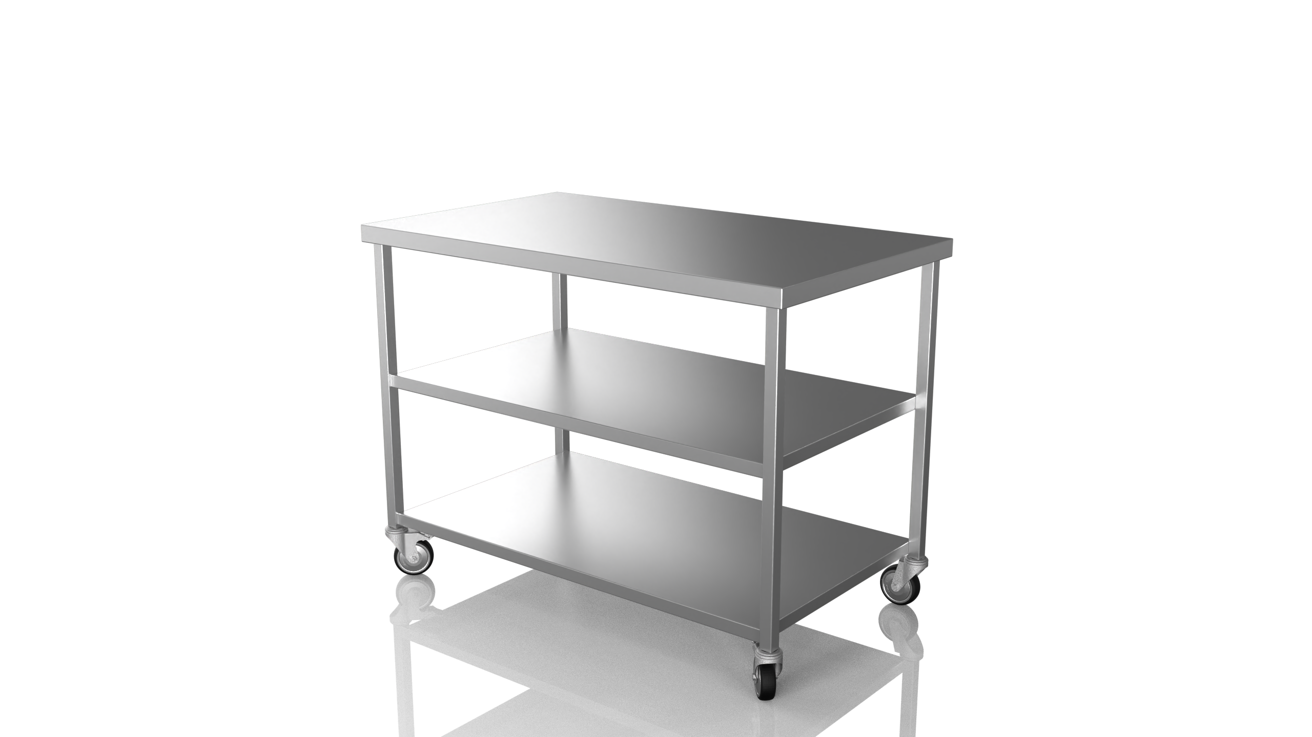 NordStar Range  This simple yet effective mobile catering bench allows for easy cleaning as it can be pulled out of the way when mopping floors etc. Its strong (fully welded) stainless steel construction makes it tough enough for the busiest of kitchens and all the sizes of bench offer ample serving and preperation space. Unlike cheaper flat packed tables the Nordstar stainless tables are made here in the UK by skilled craftsman, cut, formed, welded and finished in house by us. with a sturdy 1.2mm 304 grade workstop, heavy duty (fully welded) box section frame and welded in double shelving this unit will stand the test of time. Heavy duty castors also ensure a solid and stable unit, braked front castors mean that one the unit is in place it can be locked in position until movement is needed.
