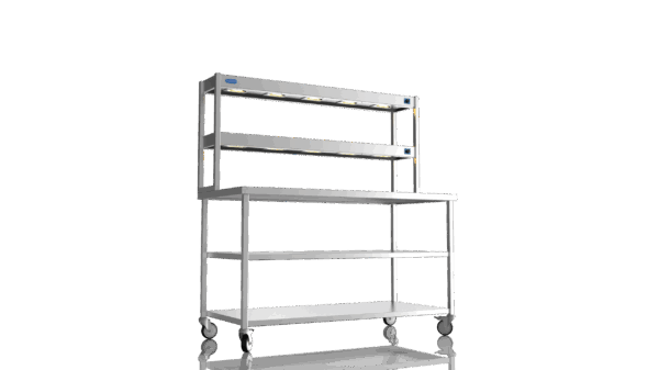 Mobile Centre Bench 1500 With 2 tier Heated Gantry (with Mid Shelf)