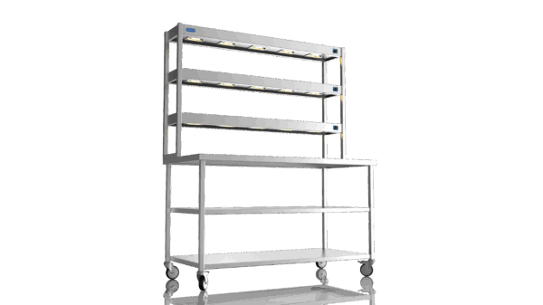 Mobile Centre Bench 1500 With 3 tier Heated Gantry (with Mid Shelf)