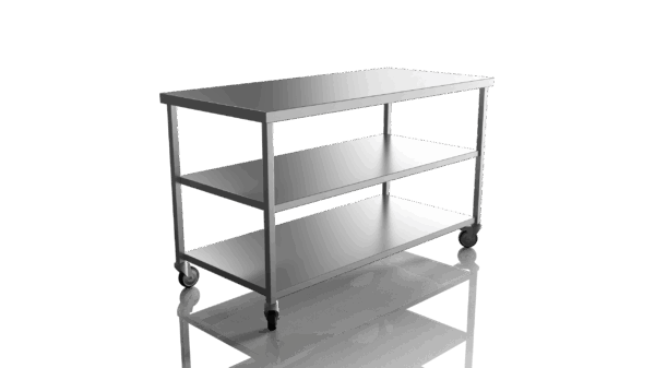 NordStar Range This simple yet effective mobile catering bench allows for easy cleaning as it can be pulled out of the way when mopping floors etc. Its strong (fully welded) stainless steel construction makes it tough enough for the busiest of kitchens and all the sizes of bench offer ample serving and preperation space. Unlike cheaper flat packed tables the Nordstar stainless tables are made here in the UK by skilled craftsman, cut, formed, welded and finished in house by us. with a sturdy 1.2mm 304 grade workstop, heavy duty (fully welded) box section frame and welded in double shelving this unit will stand the test of time. Heavy duty castors also ensure a solid and stable unit, braked front castors mean that one the unit is in place it can be locked in position until movement is needed.