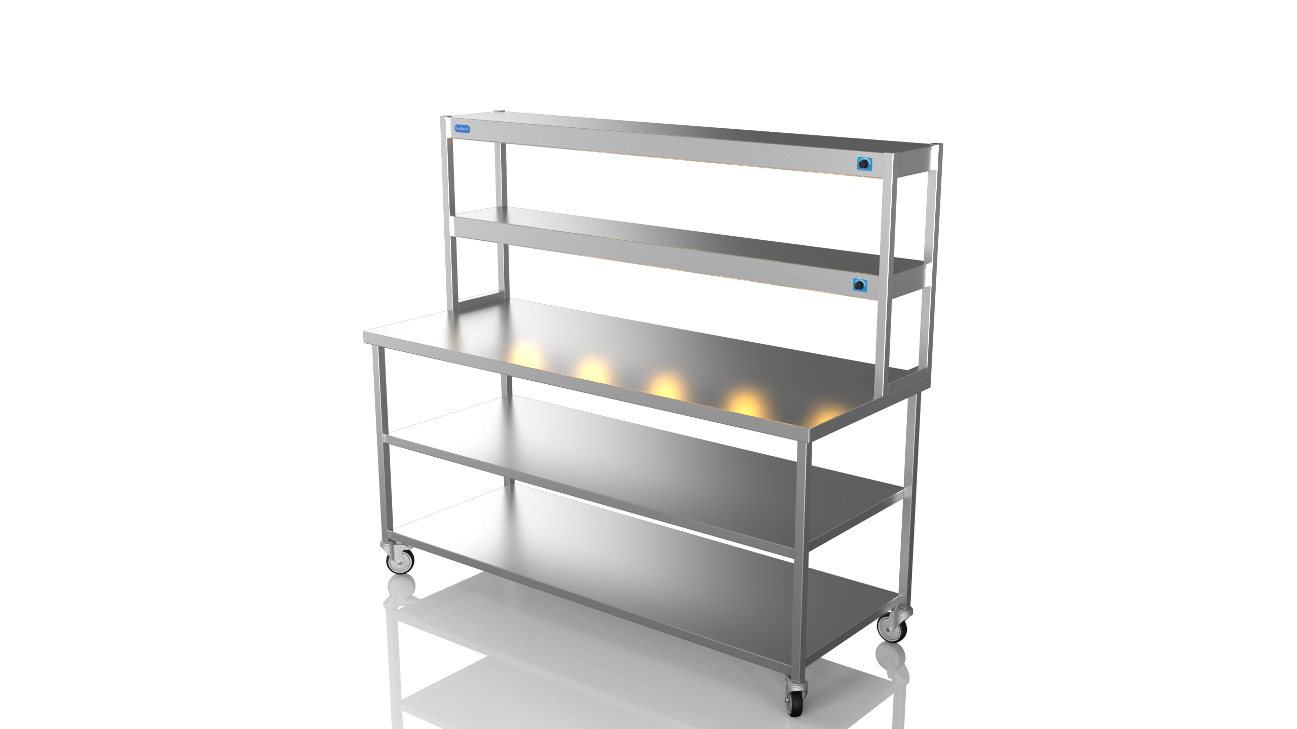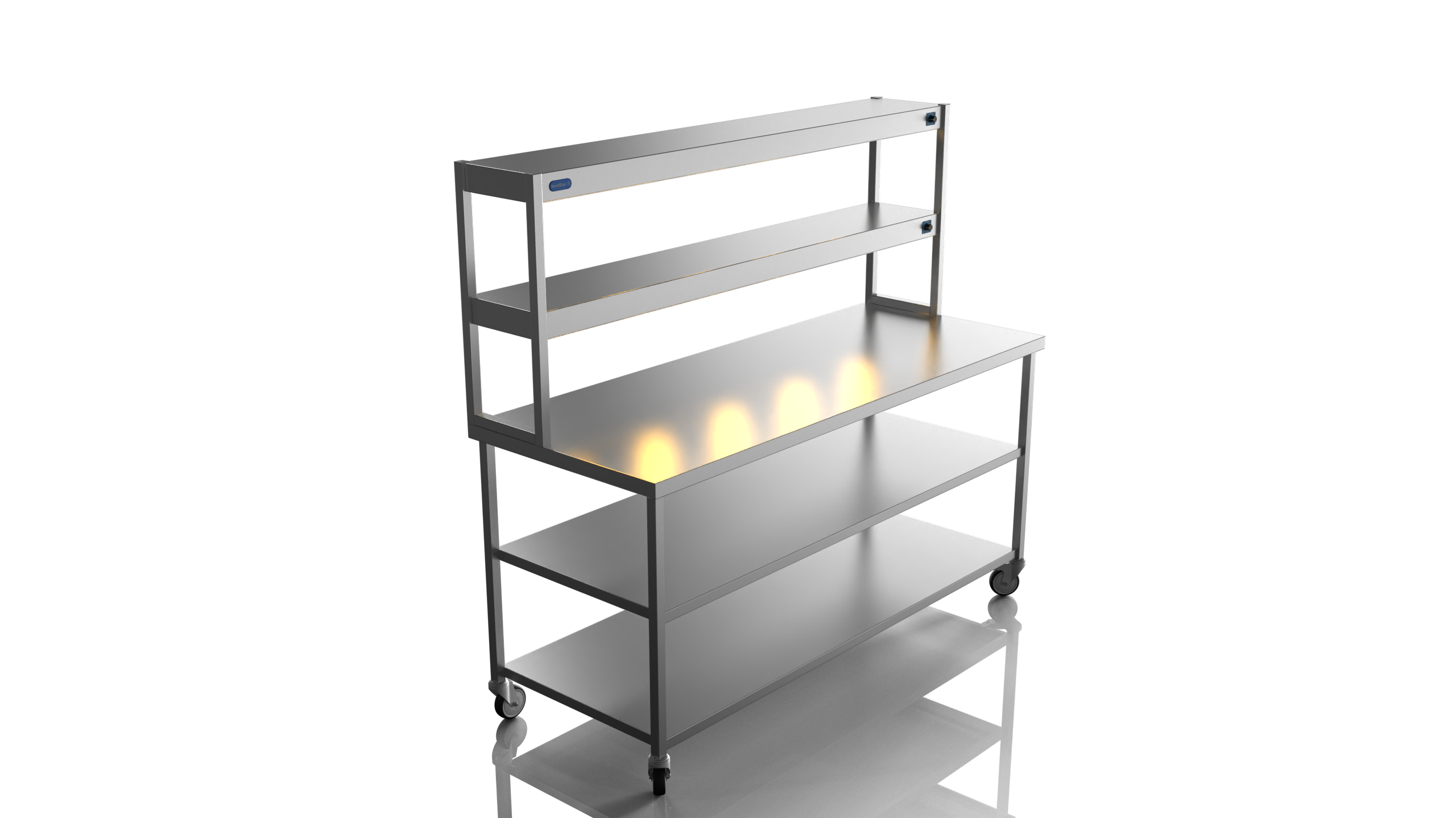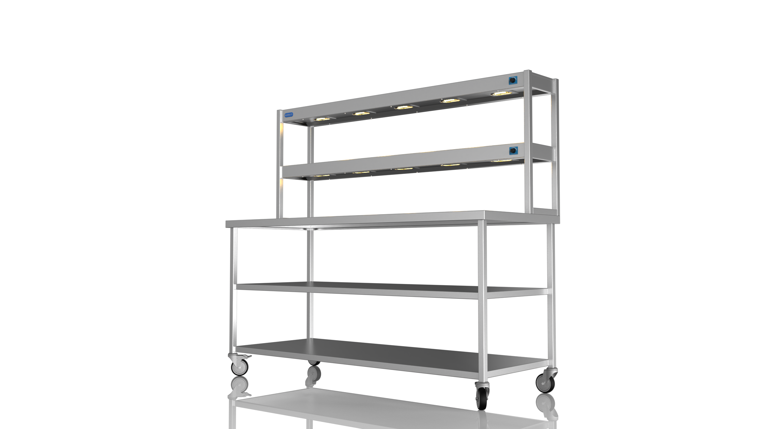 Mobile Centre Bench 1800 With 2 tier Heated Gantry (with Mid Shelf)