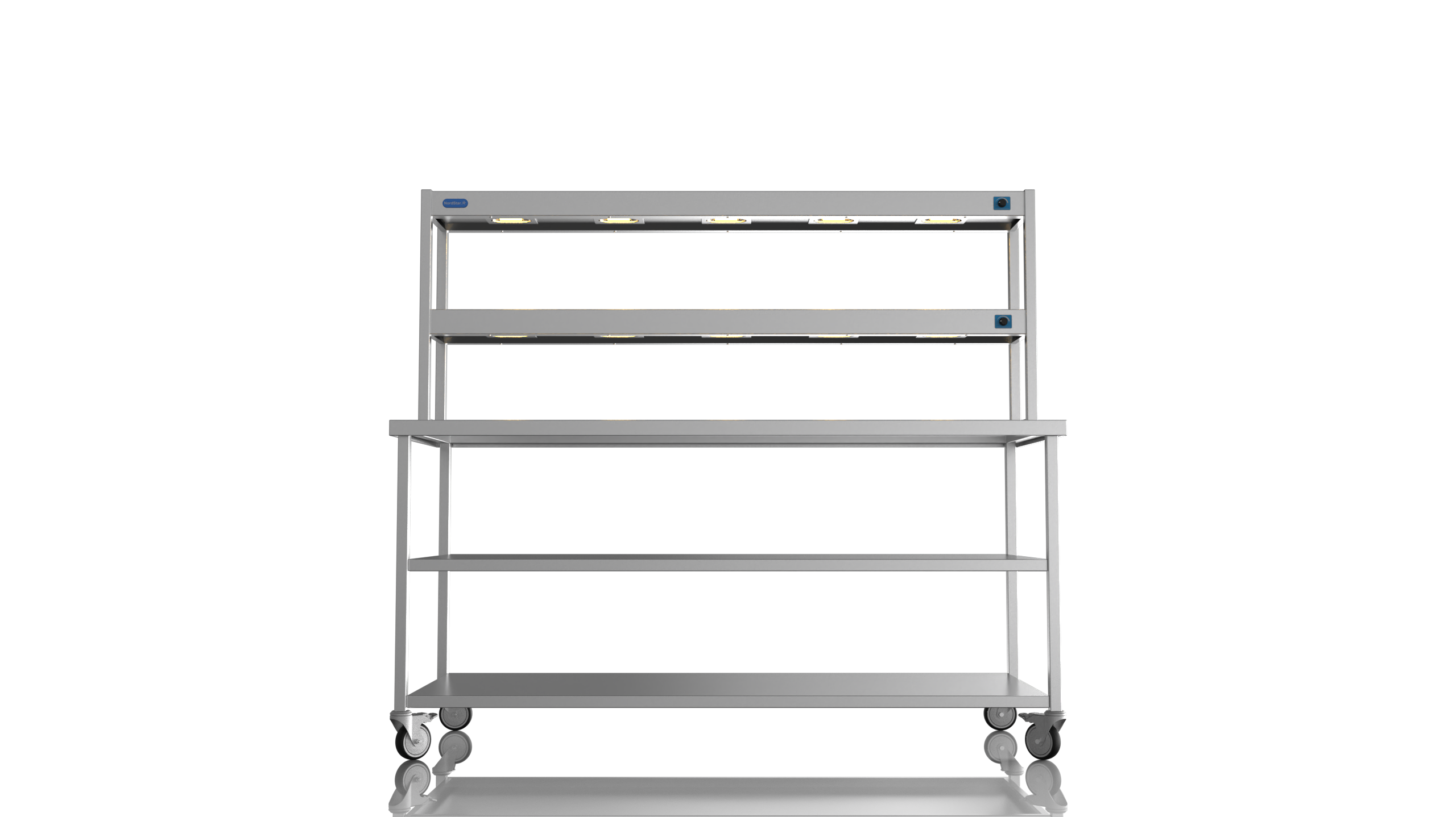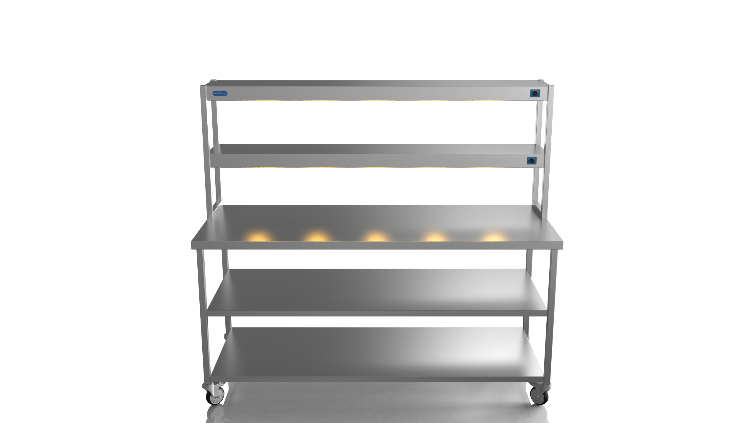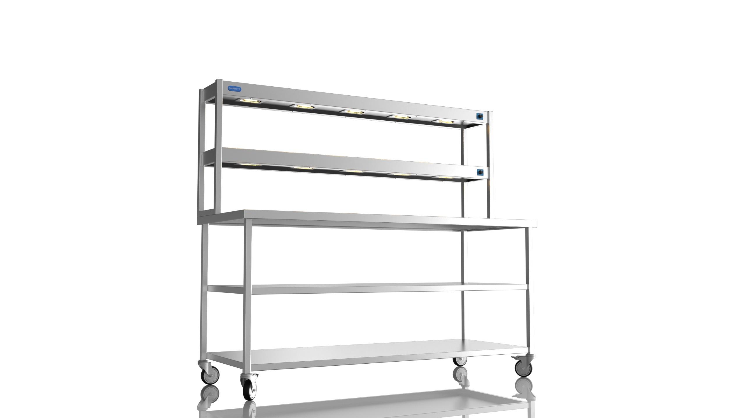 Mobile Centre Bench 1800 With 2 tier Heated Gantry (with Mid Shelf)