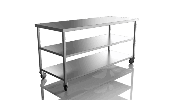 NordStar Range This simple yet effective mobile catering bench allows for easy cleaning as it can be pulled out of the way when mopping floors etc. Its strong (fully welded) stainless steel construction makes it tough enough for the busiest of kitchens and all the sizes of bench offer ample serving and preperation space. Unlike cheaper flat packed tables the Nordstar stainless tables are made here in the UK by skilled craftsman, cut, formed, welded and finished in house by us. with a sturdy 1.2mm 304 grade workstop, heavy duty (fully welded) box section frame and welded in double shelving this unit will stand the test of time. Heavy duty castors also ensure a solid and stable unit, braked front castors mean that one the unit is in place it can be locked in position until movement is needed.
