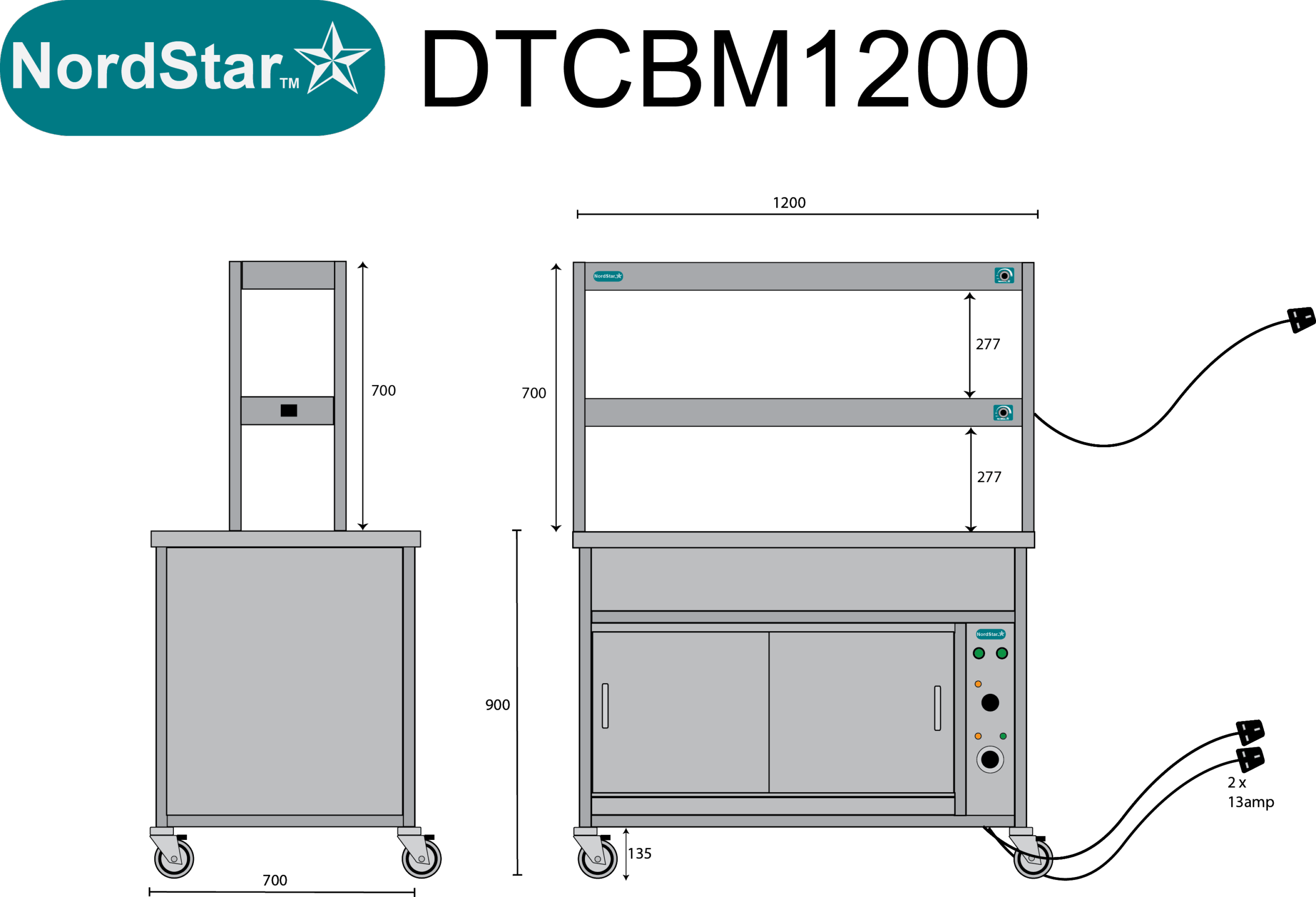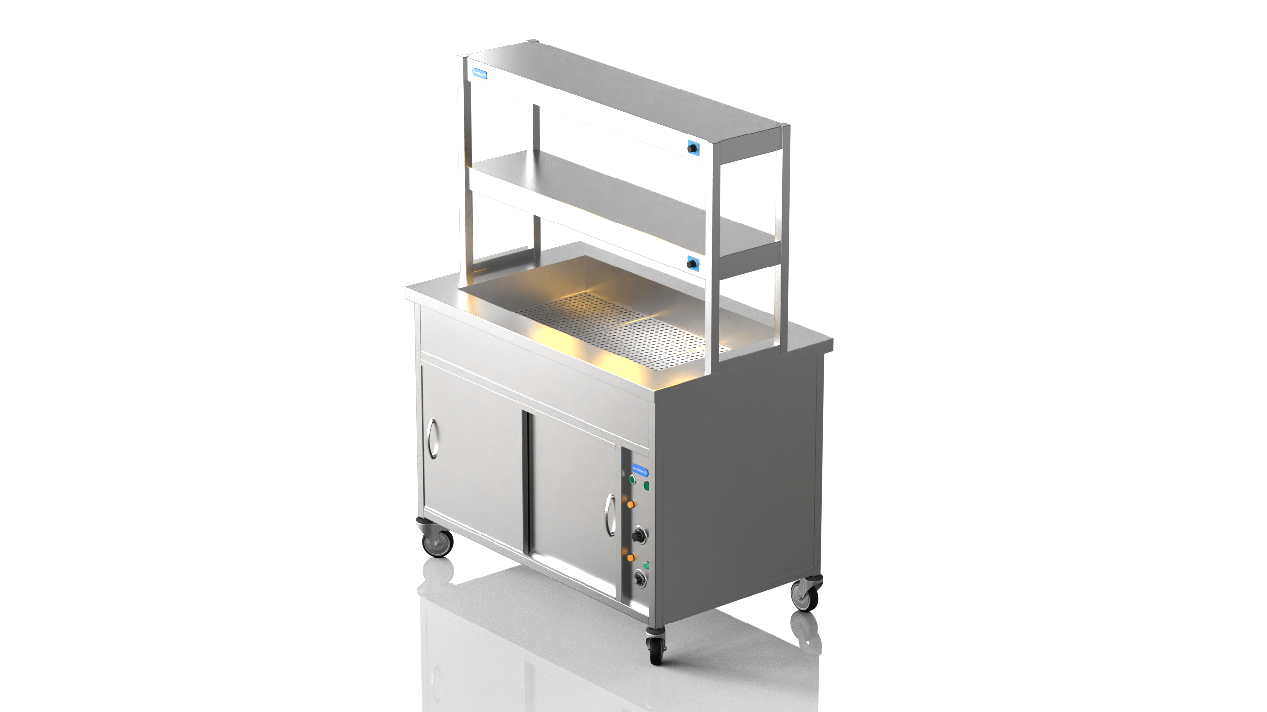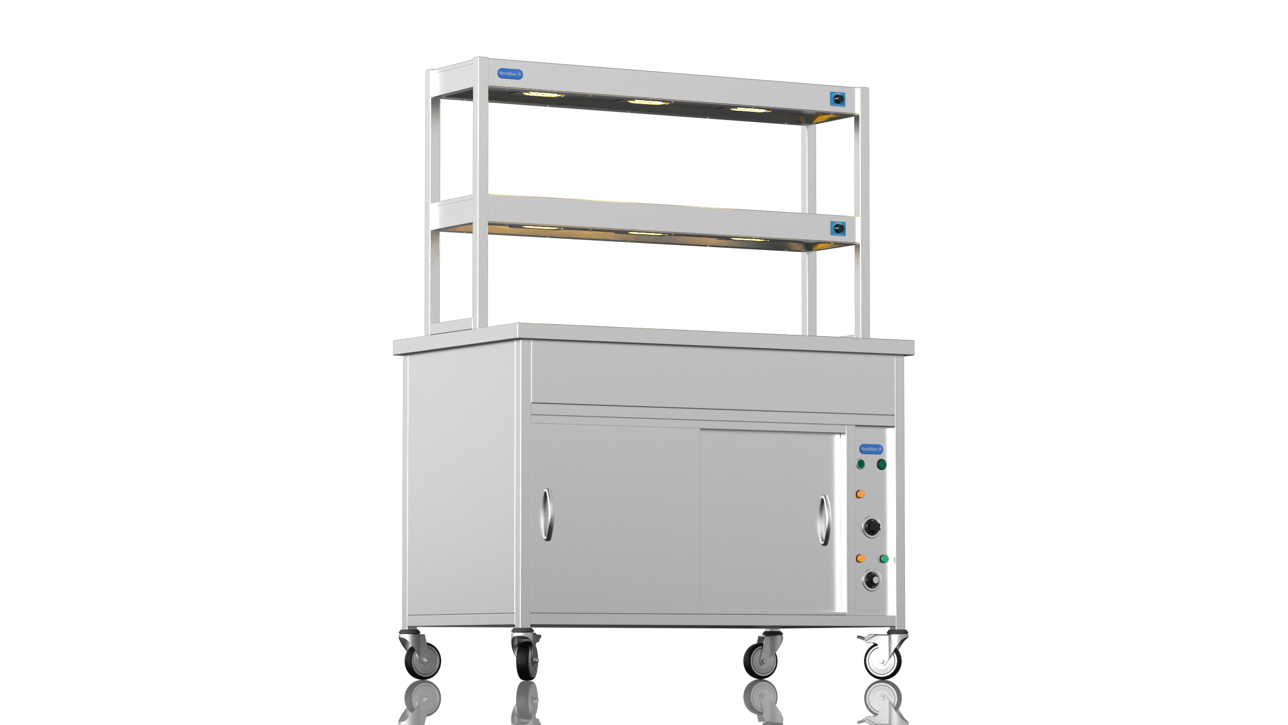 Perfect for serving hot food in schools, hotels, buffets and care homes, the NordStar Bain Maire hot cupboard (DRY HEAT) can help you serve food quickly and efficiently – 3 x full size (1/1) gastronorms. This Bain Marie Unit comes with a double tier heated gantry making it ideal for catering in establishments such as care home, schools, or universities, carvery and buffet. The independently controlled bain marie top is versatile and can be configured for smaller pans if required. This means your menus can offer a wide variety and choice of dishes, especially when it comes to catering for those with specific dietary requirements.It also features a simple thermostat control for the hot cupboard, simmer stat control for the bain marie. comes complete with castors. can be fitted with tray slide and sneeze guard at your request. Gastro pans can be bought seperately