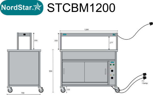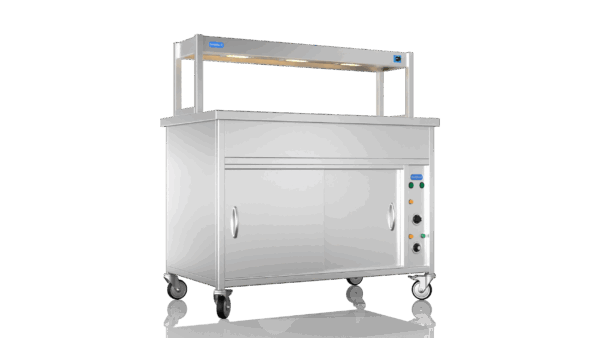 Perfect for serving hot food in schools, hotels, buffets and care homes, the NordStar Bain Maire hot cupboard (DRY HEAT) can help you serve food quickly and efficiently – 3 x full size (1/1) gastronorms. This Bain Marie Unit comes with a single tier heated gantry making it ideal for catering in establishments such as care home, schools, or universities, carvery and buffet. The independently controlled bain marie top is versatile and can be configured for smaller pans if required. This means your menus can offer a wide variety and choice of dishes, especially when it comes to catering for those with specific dietary requirements.It also features a simple thermostat control for the hot cupboard, simmer stat control for the bain marie. comes complete with castors. can be fitted with tray slide and sneeze guard at your request