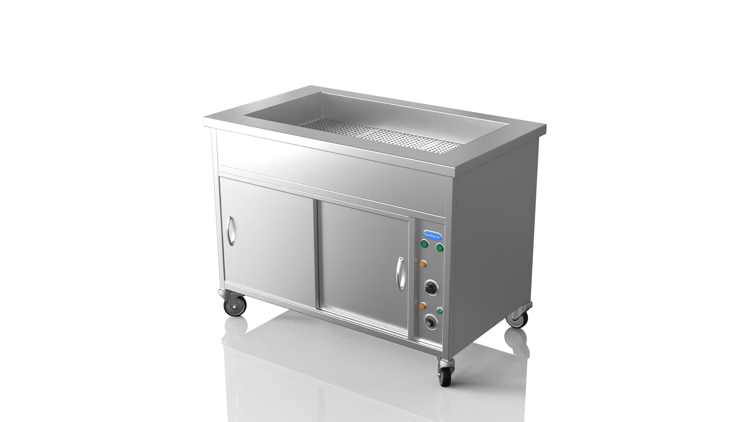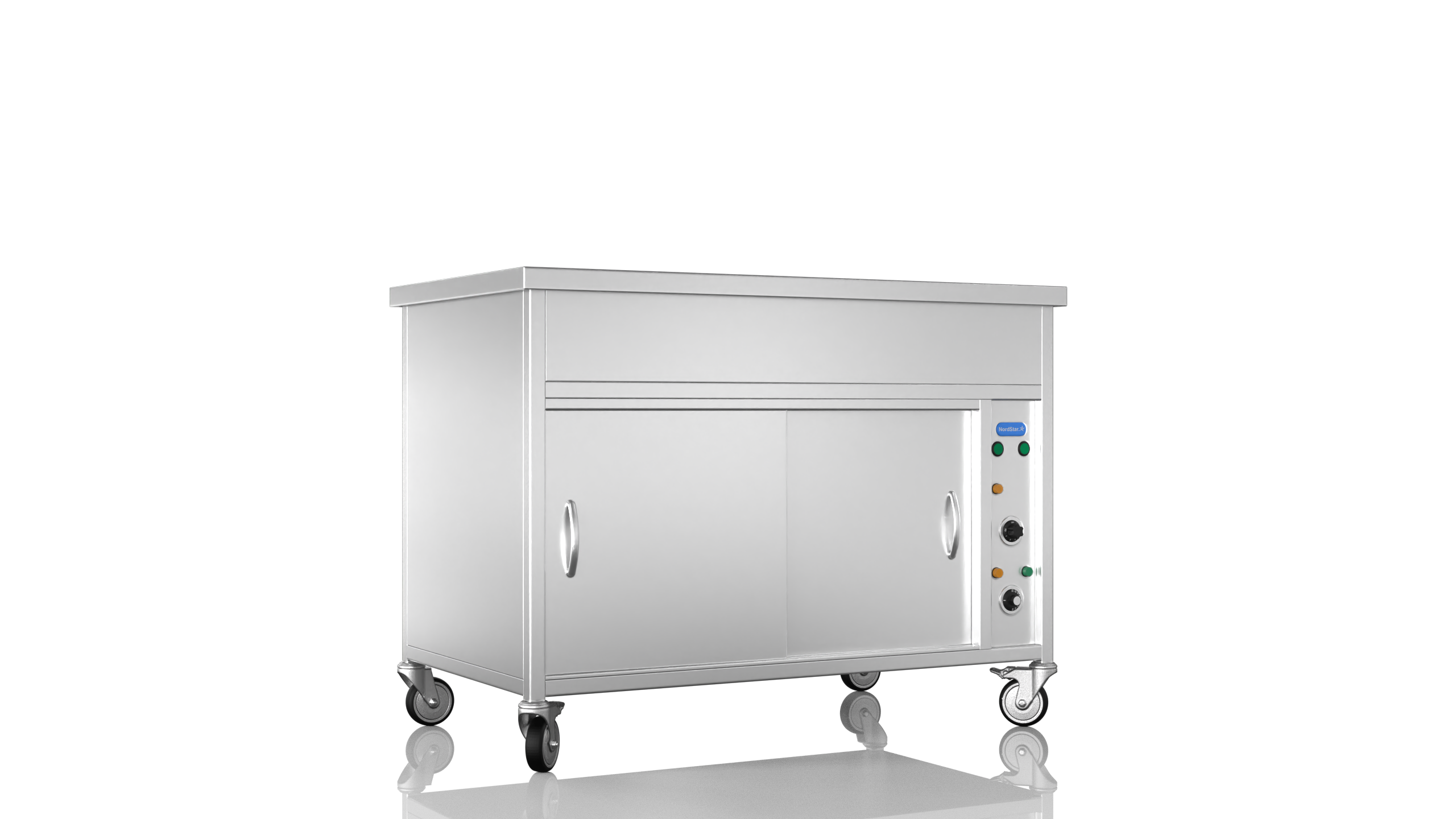 It also features a simple thermostat control for the hot cupboard, simmer stat control for the bain marie. comes complete with castors. can be fitted with tray slide at your request