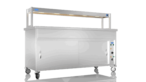 Perfect for serving hot food in schools, hotels, buffets and care homes, the NordStar Bain Maire hot cupboard (DRY HEAT) can help you serve food quickly and efficiently – 5 x full size (1/1) gastronorms. This Bain Marie Unit comes with a single tier heated gantry making it ideal for catering in establishments such as care home, schools, or universities, carvery and buffet. The independently controlled bain marie top is versatile and can be configured for smaller pans if required. This means your menus can offer a wide variety and choice of dishes, especially when it comes to catering for those with specific dietary requirements.It also features a simple thermostat control for the hot cupboard, simmer stat control for the bain marie. comes complete with castors. can be fitted with tray slide and sneeze guard at your request