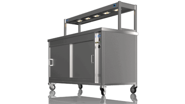 Hot Cupboard is a high quality, reliable appliance, ideal for care homes, restaurants and canteens. Constructed with easy to clean stainless steel, contents are kept at warm and hygienic temperatures due to its fully insulated panels, easily accessible using our own sliding door system. Perfect for confined spaces such as hallways and corridors. This Combination of Hot Cupboard and Gantry is commonly used as a Chefs Pass/ Chefs Hot Pass