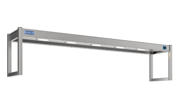 Single Tier Pass Over Gantry 1800mm is a robust over-shelving with 5 x Quartz lamp heating, Cleverly designed offering a strong fully welded stainless steel construction, dimmer switch for individual control, Standard lengths are made to suit the NordStar Premier range of hot cupboard and are sold as a combination Hot Cupboard and Gantry