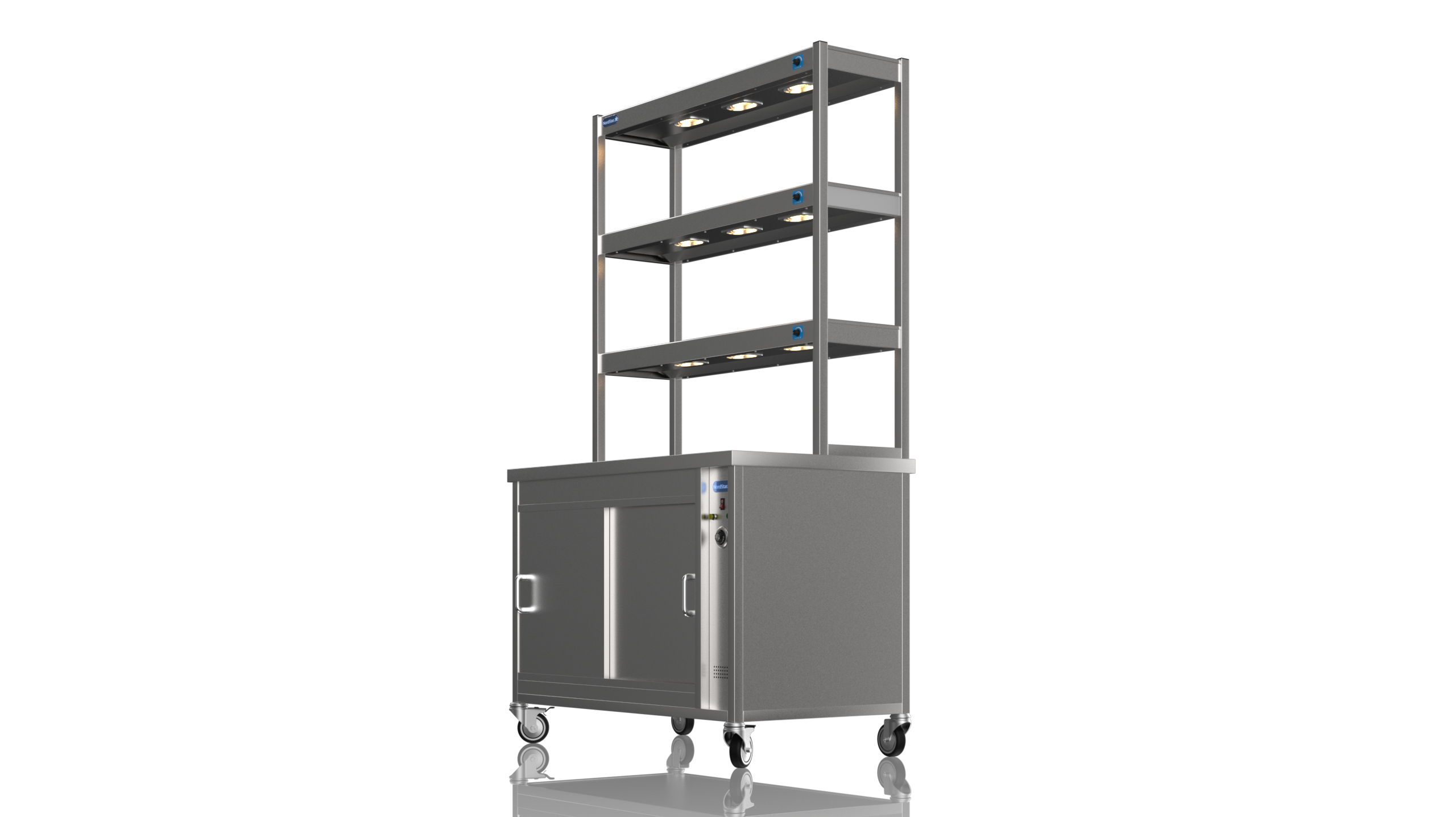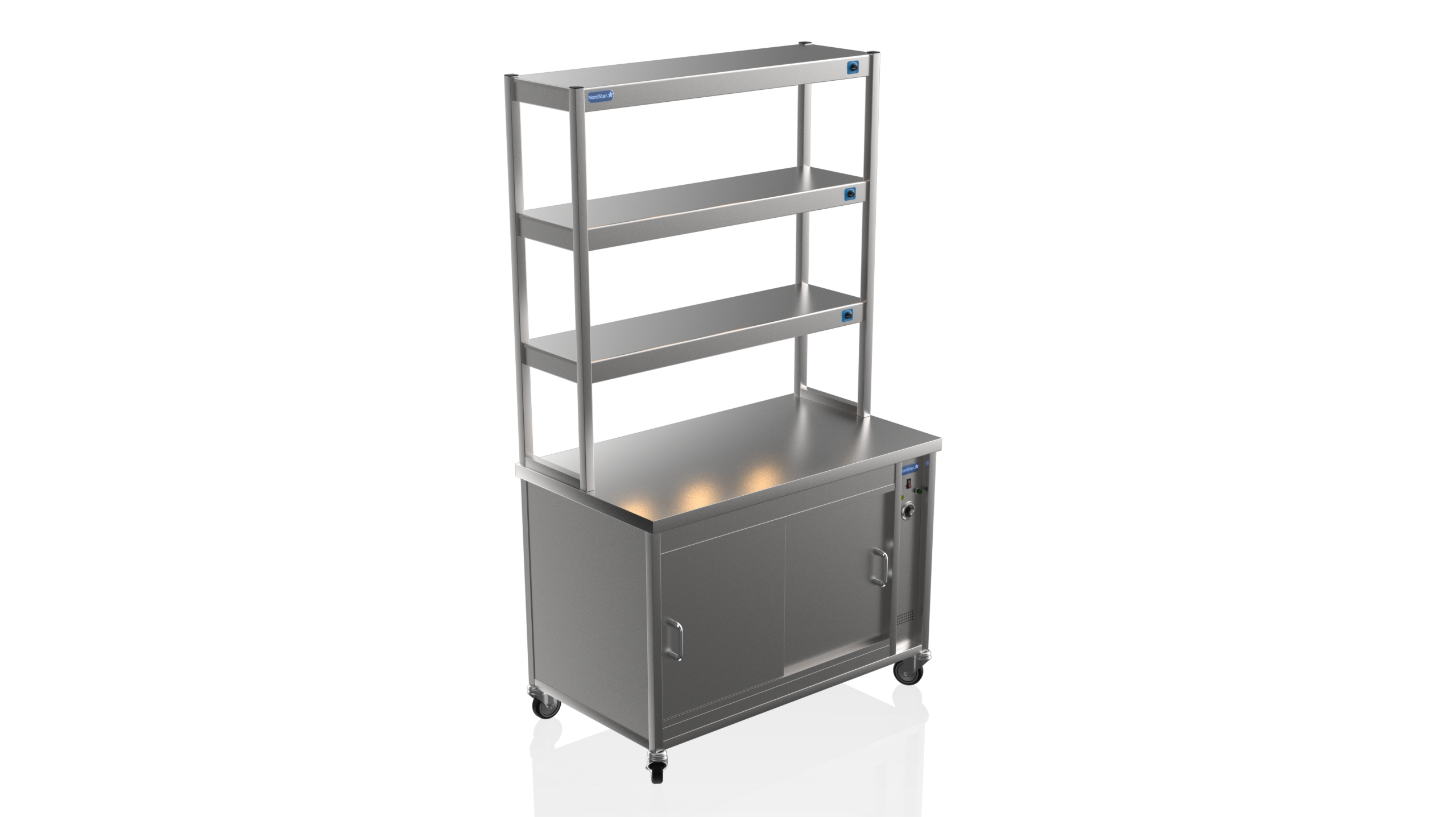Hot Cupboard is a high quality, reliable appliance, ideal for care homes, restaurants and canteens. Constructed with easy to clean stainless steel, contents are kept at warm and hygienic temperatures due to its fully insulated panels, easily accessible using our own sliding door system. Perfect for confined spaces such as hallways and corridors. This Combination of Hot Cupboard and Gantry is commonly used as a Chefs Pass/ Chefs Hot Pass