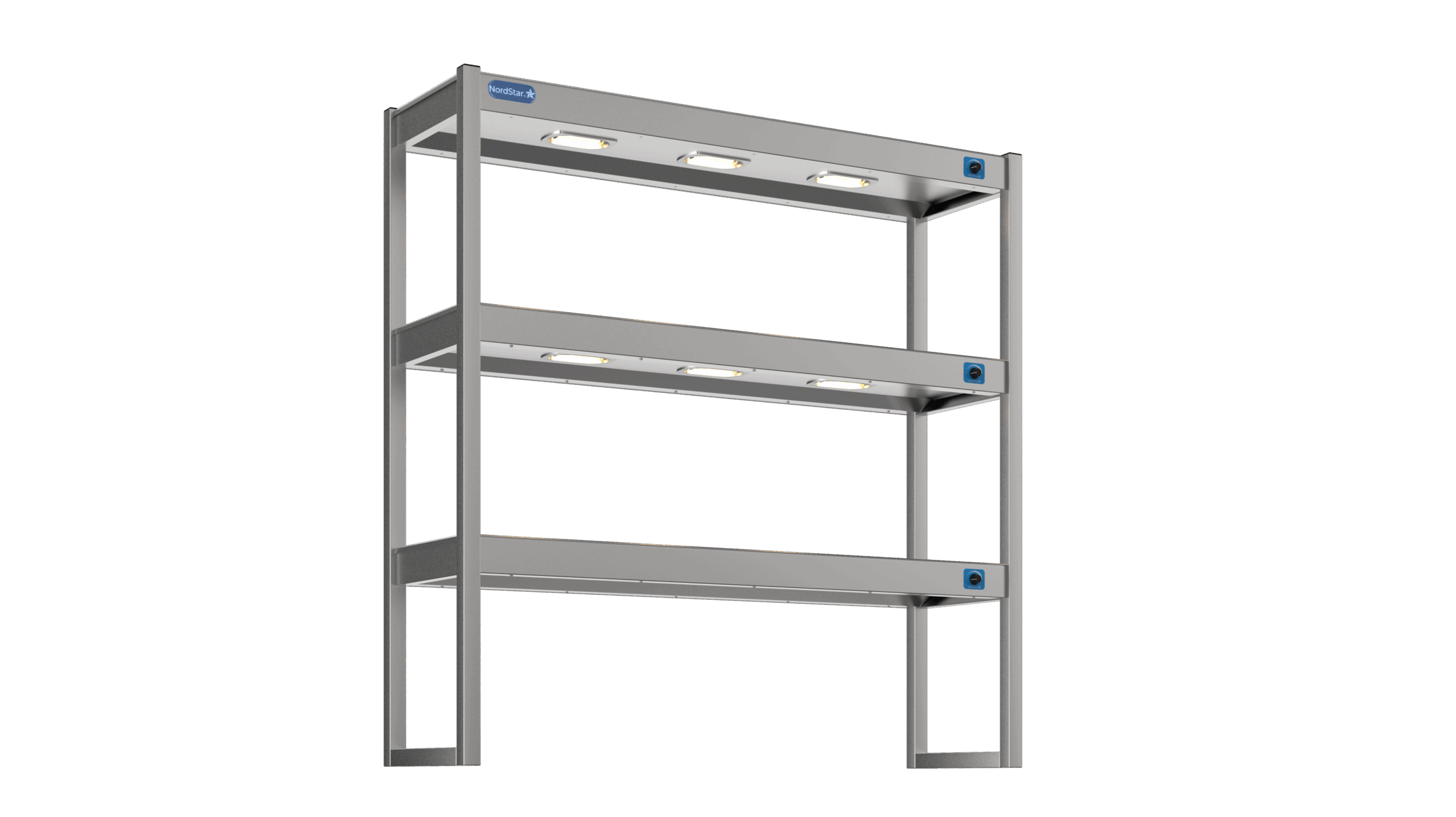 three tier Gantry features 9 x heated lamps, easy to use dimmer switches and will keep counter top food warm ready for service.