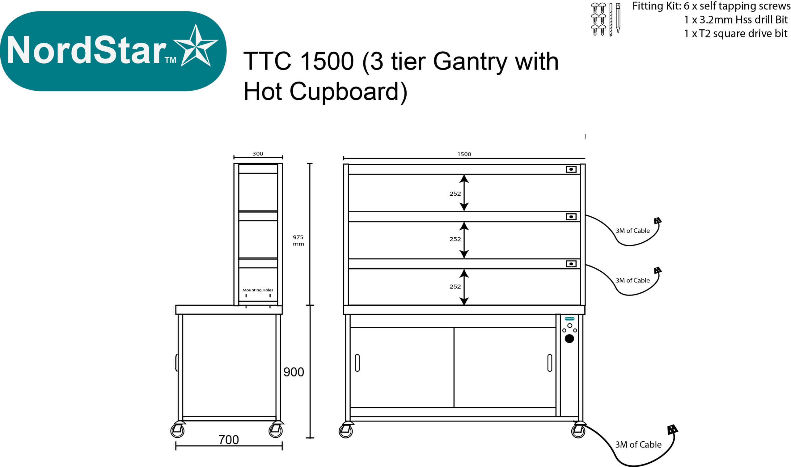 The Nordstar 3 Tier Gantry and Pass-though Hot Cupboard Combo 1500