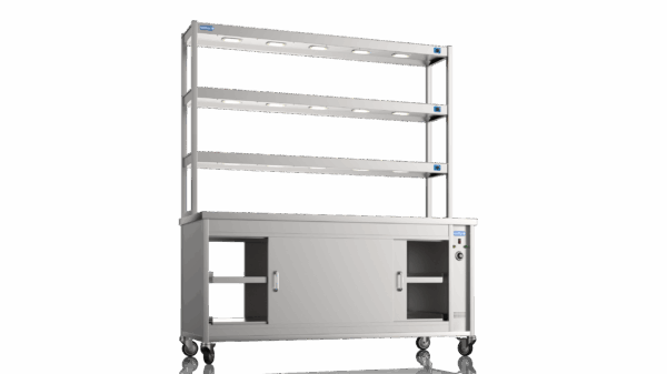 Hot Cupboard is a high quality, reliable appliance, ideal for care homes, restaurants and canteens. Constructed with easy to clean stainless steel, contents are kept at warm and hygienic temperatures due to its fully insulated panels, easily accessible using our own sliding door system both sides. Perfect for confined spaces such as hallways and corridors. This Combination of Hot Cupboard and Gantry is commonly used as a Chefs Pass/ Chefs Hot Pass
